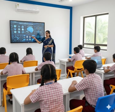 Vidya Sarathi Academy is leading the way in AI-based education, empowering students with essential 21st-century skills through a structured curriculum recognized by the National Education Policy (NEP) and guided by the All India Council for Technical Education.