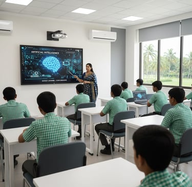 Vidya Sarathi Academy offers an innovative education platform designed for students from Class 6 to 12, focusing on Artificial Intelligence (AI) from the basics to advanced applications. The goal is to develop real-world industry skills, preparing students for future careers where traditional academics alone are not sufficient.